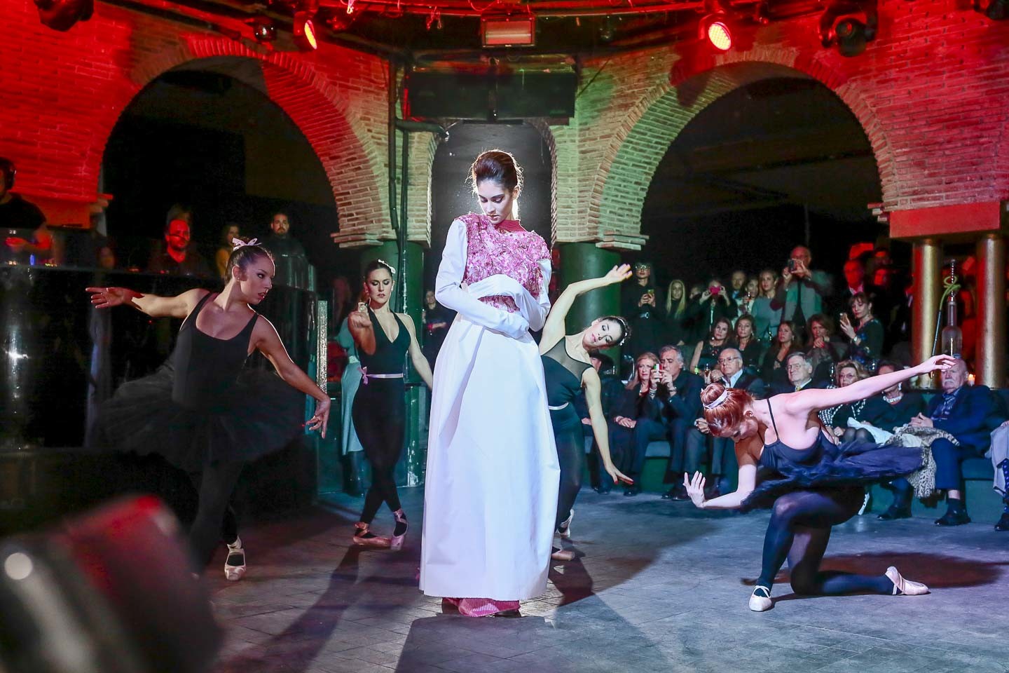 Efectivamente, menos de 7 metros de distancia entre modelo y fotógrafo, un techo desnivelado y luces que iban rotando sin secuencia, según le iba dando la gana básicamente al DJ... Eso sí, hice mis deberees y estuve antes, medí las distancias y las luces. Incluso me tomé la molestia de hacer unas fotos durante los ensayos para no dejar mucho al azar.